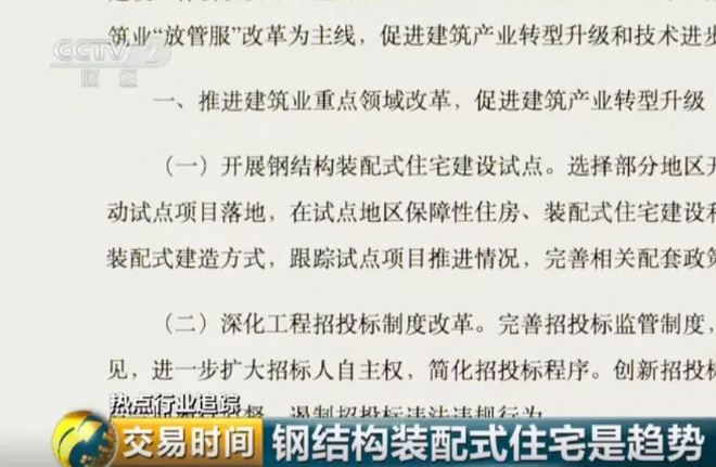 方晏荷(華泰證券建筑建材分析師 ):可能包括鋼結(jié)構(gòu)在內(nèi)的(裝配式建筑)可能對(duì)拉動(dòng)上游的水泥、混凝土還有鋼材、鋼鐵產(chǎn)能的消化。還有下游的節(jié)能環(huán)保。我們認(rèn)為上下游都會(huì)有一些比較好的機(jī)會(huì)。